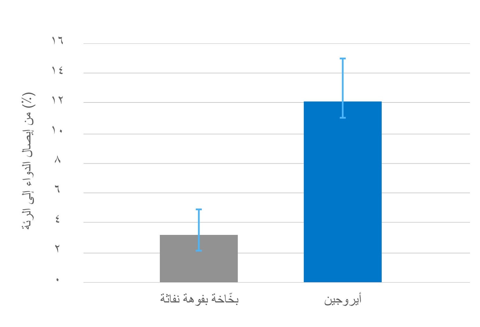 تم توصيل حوالي 4 أضعاف كمية الدواء إلى الرئتين باستخدام جهاز أيروجين أثناء التنفس الصناعي اللا تداخلي مقارنة ببخّاخة بفوهة نفاثة³